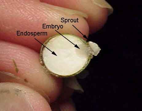 seed showing sprout, embryo and endosperm