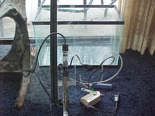 Sprouting setup, five gallon aquarium, submersible heater, airstone and thermometer