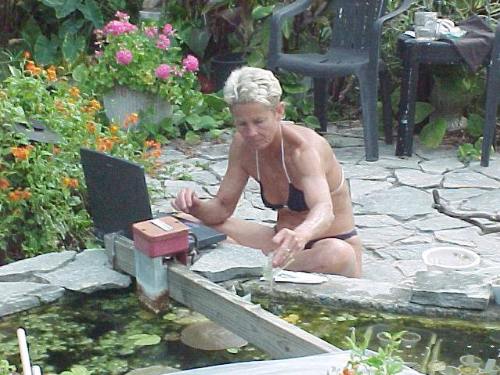 Kit at the laptop checking baby